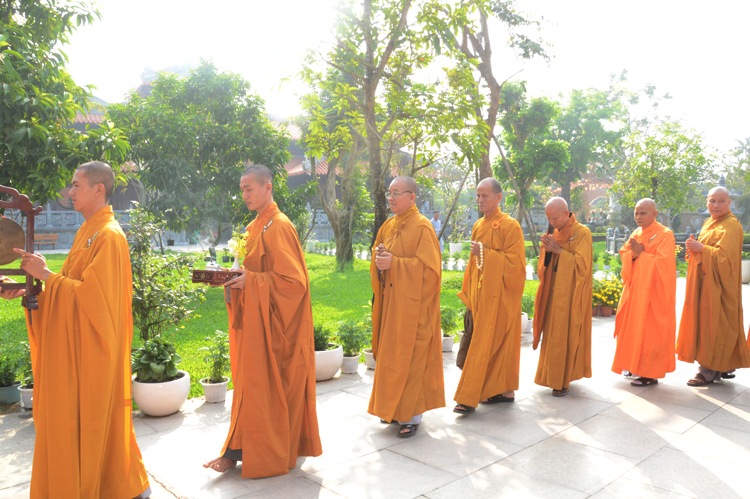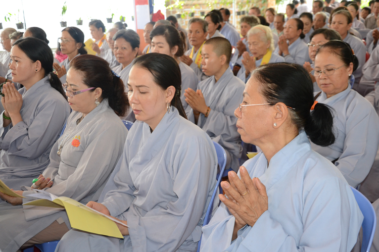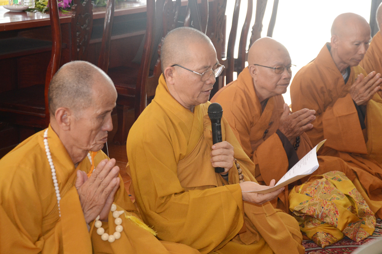 Tiếp theo đó Chư tôn đức thự hiện nghi thức với niêm hương bạch Phật, toàn thể hội chúng trì tụng Kinh Phước Đức và đảnh lễ Tam bảo.