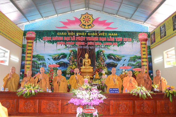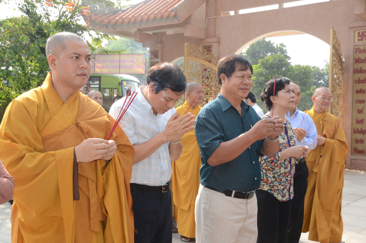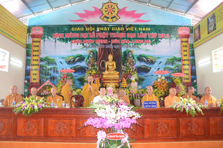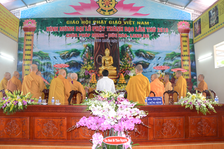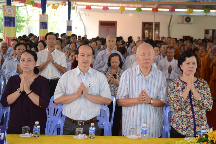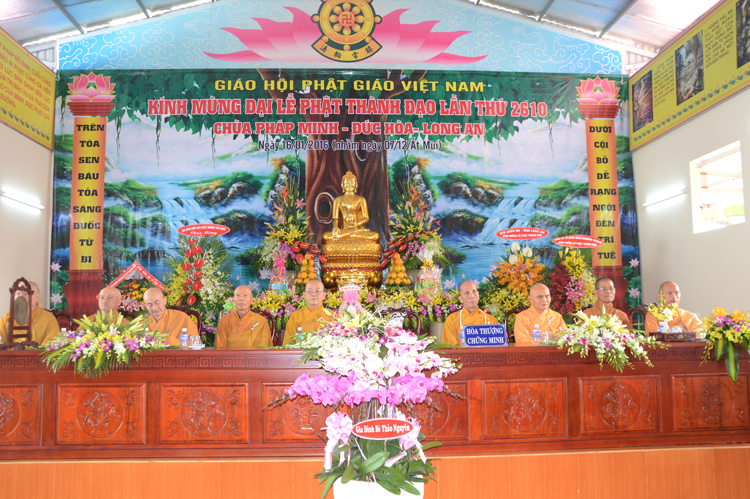 Quang lâm chứng minh tham dự có chư tôn đức giáo phẩm Ht. Thích Minh Thiện- Ủy viên HĐTSTƯ, Phó ban hoằng pháp trung ương, Trưởng Ban trị sự GHPGVN tỉnh Long An; TT. Thích Thanh Phong- Trưởng Ban kinh tế tài chánh GHPGVN; HT. Thích Thiện Tâm- Phó Ban trị sự GHPGVN tỉnh Long An, HT. Thích Huệ Hồng – Phó Ban trị sự GHPGVN tỉnh Long An; HT. Thích Thiện Phúc- Trưởng Ban trị sự GHPGVN liên Huyện Đức Hòa- Đức Huệ, Trưởng Ban tổ chức Đại lễ. ĐĐ Thích Quảng Lâm – Ủy viên Ban Phật Giáo Quốc Tế TWGHPGVN, phó trưởng ban tổ chức Đại Lễ cùng chư tôn đức lãnh đạo các ban trị sự các huyện thị trong tỉnh, Tăng Ni sinh trường trung cấp Phật học Long An chư tôn đức trụ trì các tự viện trong tỉnh và hơn 1000 Phật tử về tham dự.
