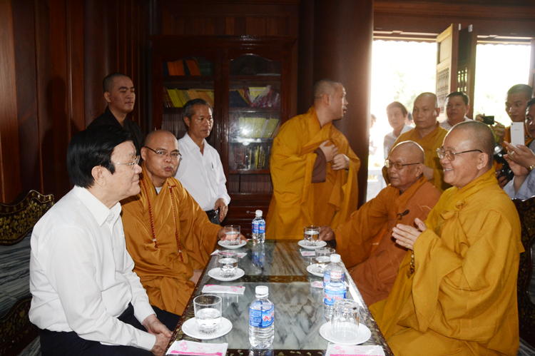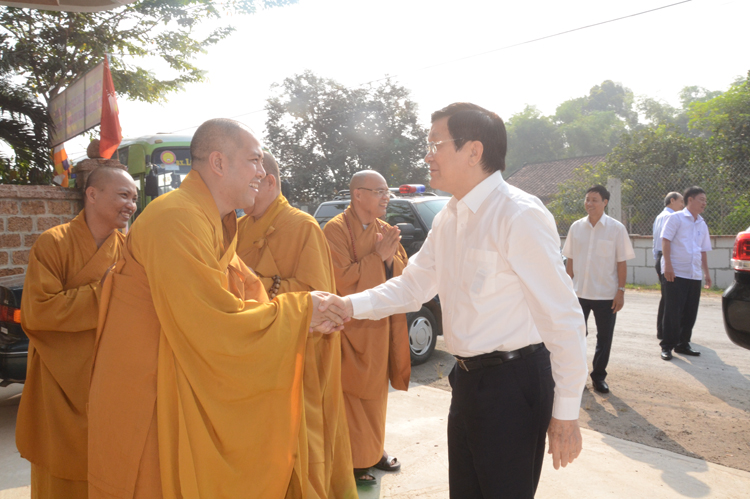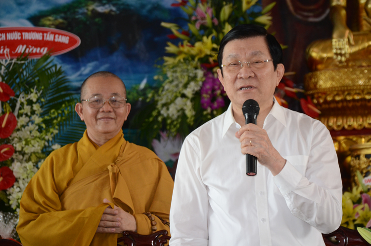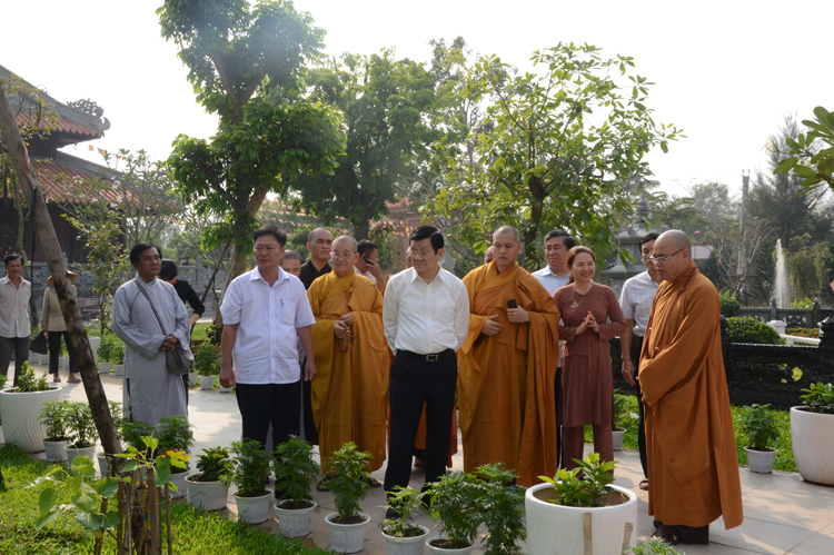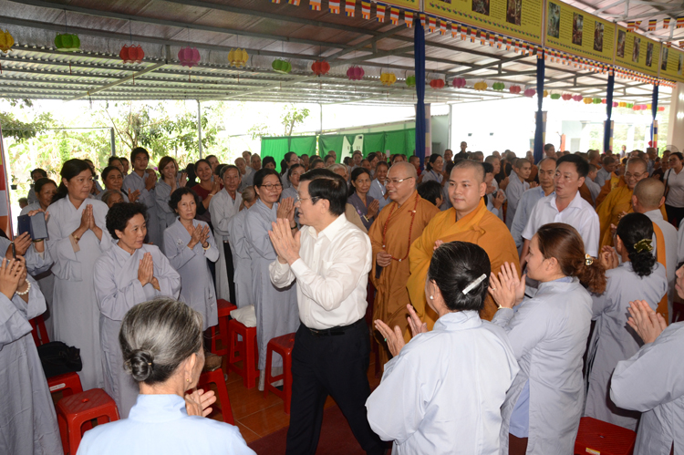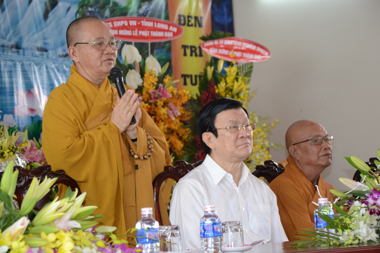 Qua báo cáo, Chủ tịch rất vui mừng những thành tựu đã đạt được của GHPGVN nói chung và Phật giáo Long An; Chủ Tịch ghi nhận những đóng góp của Phật giáo, đặc biệt là Phật giáo tỉnh nhà. Ngài Mong muốn những năm tới Phật giáo tiếp tục phát huy tinh thần hộ quốc an cùng nhà nước xây dựng đất nước ngày thêm giàu đẹp. Nhân dịp chuẩn bị đón tết cổ truyền Nài kính chúc toàn thể Tăng, Ni, Phật tử tỉnh nhà nhiều sức khỏe và đón tết vui vẻ.