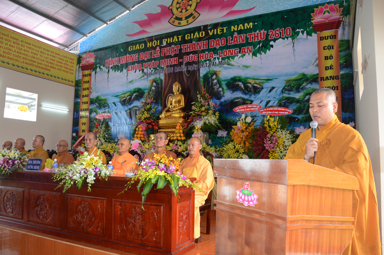 Tại buổi lễ HT. Thích Minh Thiện đã trình bày một số hoạt động thành tựu tiêu biểu của Phật giáo tỉnh Long An cũng như GHPGVN trong năm 2015 cho ngài chủ Tịch nghe.
