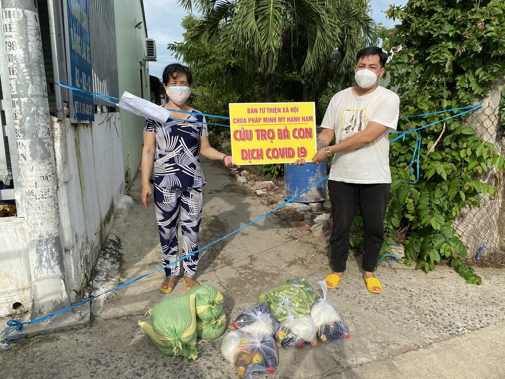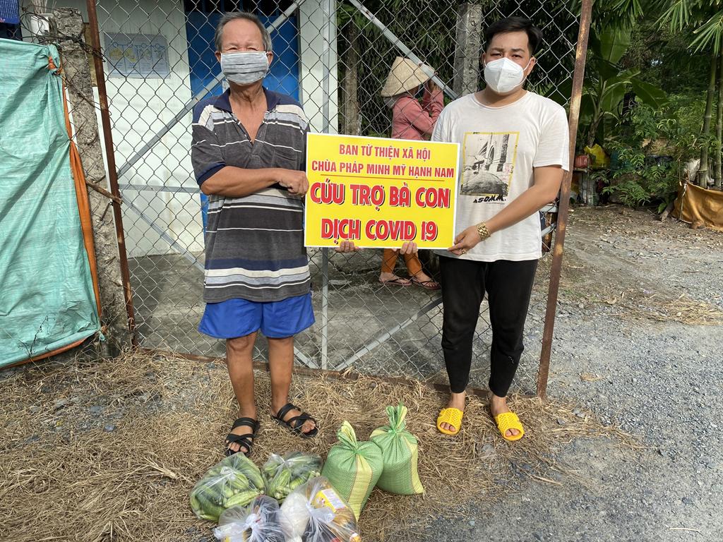 Nhằm thể hiện tinh thần từ bi của người con Phật, tương thân tương ái của dân tộc Việt Nam và chia sẻ bớt khó khăn cho tuyến đầu chống dịch, đồng bào đang bị cách ly, phong tỏa, gặp hoàn cảnh khó khăn; thời gian qua Đại đức Thích Lệ Duyên, Phật tử Vạn Tấn (Phan Tiến Soạn) và quý Phật tử đại diện Ban Từ thiện Xã hội Chùa Pháp Minh đã trao tặng những phần quà (gồm gạo, mì, sữa, thuốc, đường, nước tương, nước suối, rau củ quả…) đến các khu cách vực bị cách ly, phong tỏa, đồng bào gặp hoàn cảnh khó khăn; trực tiếp nấu các phần thức ăn (cơm, cháo, chè, bánh canh, bánh mì, bánh ít…) trao tặng đến các bệnh viện dã chiến, các chốt kiểm soát dịch bệnh.