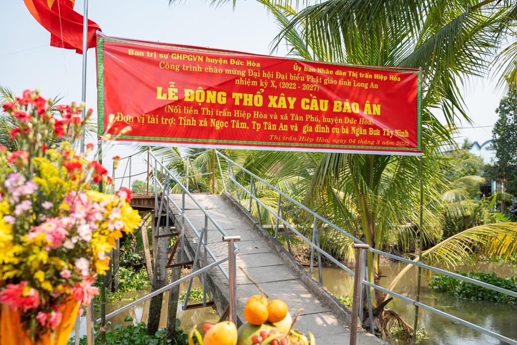Chiều ngày 04/03/2022 (nhằm ngày 02/02/Nhâm Dần), Ban Trị sự GHPGVN huyện Đức Hòa phối hợp với lãnh đạo thị trấn Hiệp Hòa, xã Tân Phú khởi công động thổ xây cầu Báo Ân (Thổ Định) tại khu vực 3, thị trấn Hiệp Hòa, huyện Đức Hòa, tỉnh Long An.