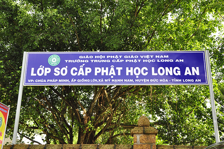 Lớp Sơ cấp Phật học được đào tạo nội trú tại Chùa Pháp Minh, ấp Giồng Lớn, xã Mỹ Hạnh Nam, huyện Đức Hòa, tỉnh Long An.
