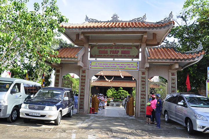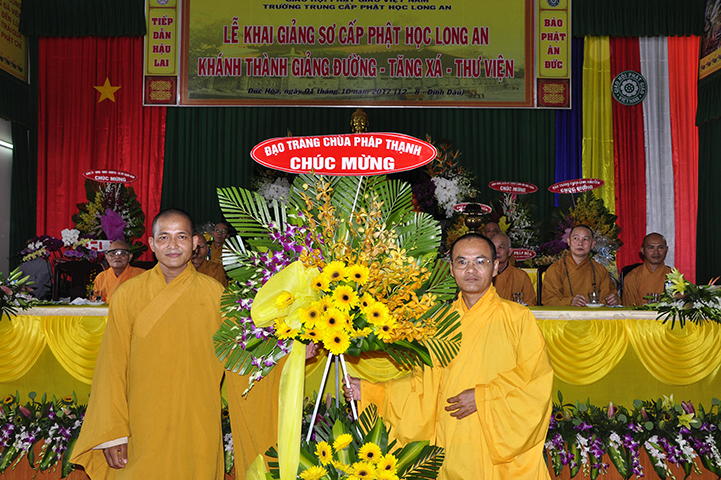 Sáng ngày 01/10/2017 ( 12/08/ Đinh Dậu), Ban Giám hiệu Trường Trung cấp Phật học Long An trang nghiêm tổ chức lễ khai giảng Khóa VI, lớp Sơ cấp Phật học Long An và  khánh thành giảng đường – Tăng xá – thư viện (cơ sở đào tạo) tại chùa Pháp Minh, ấp Giồng Lớn, xã Mỹ Hạnh Nam, huyện Đức Hòa, tỉnh Long An.