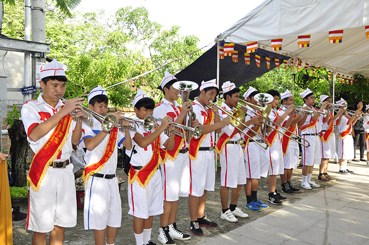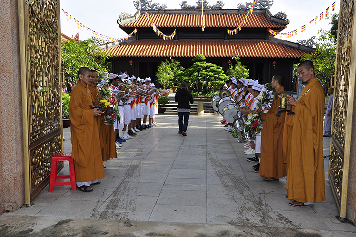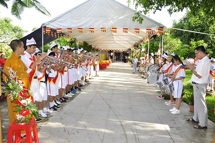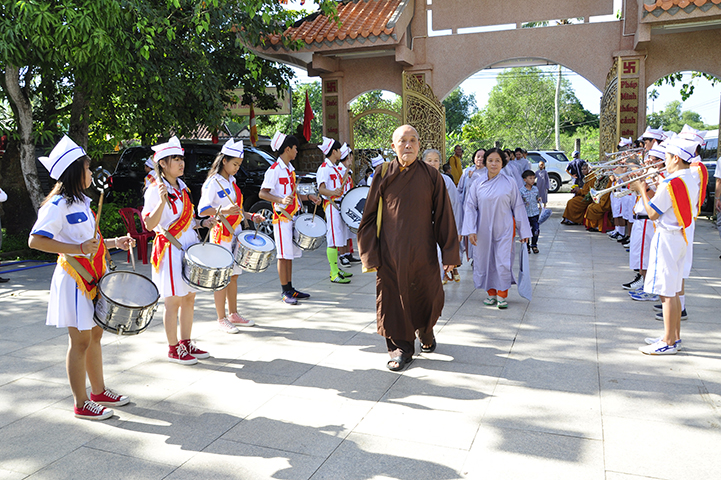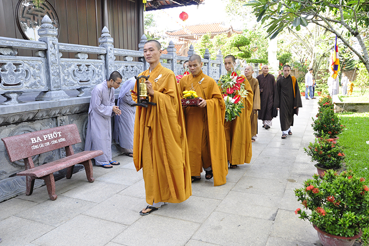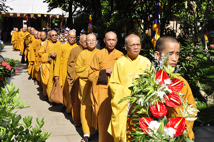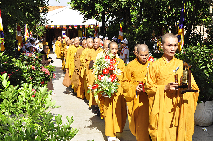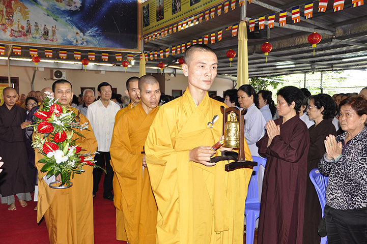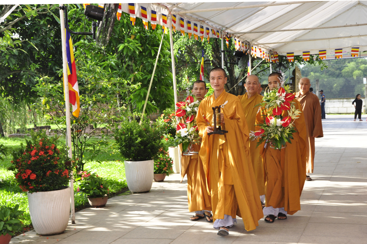 Bắt đầu buổi lễ, theo nghi thức truyền thống lễ hội Phật giáo Việt Nam, toàn thể đạo tràng niệm Phật cầu gia hộ – chào cờ quốc kỳ, đạo kỳ.