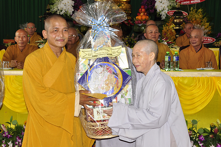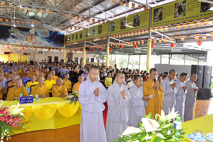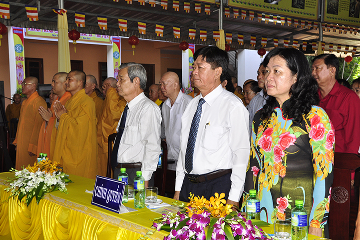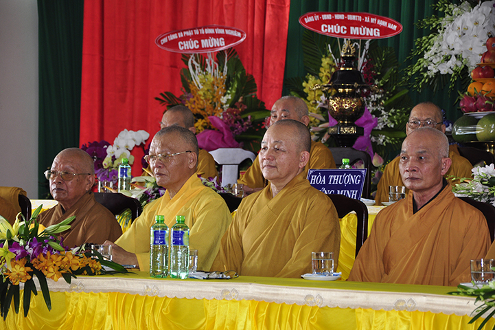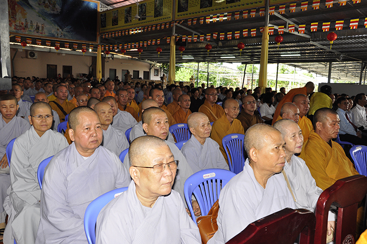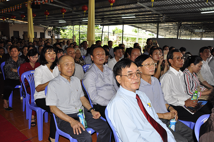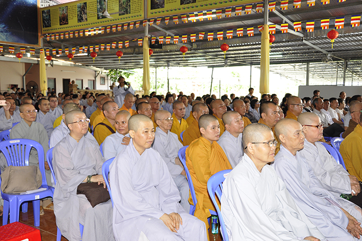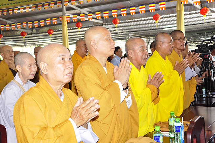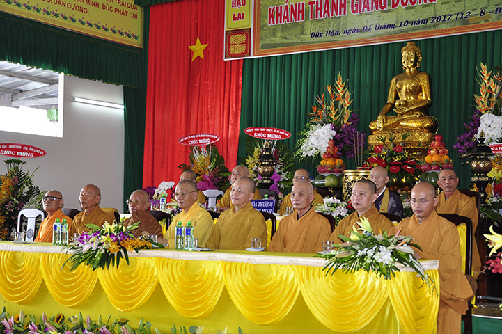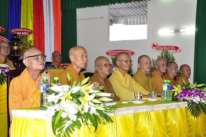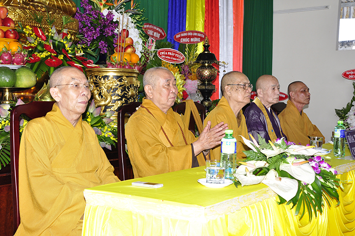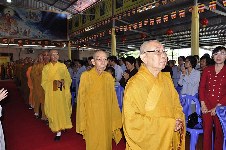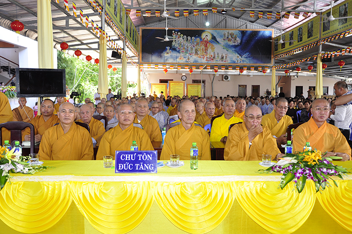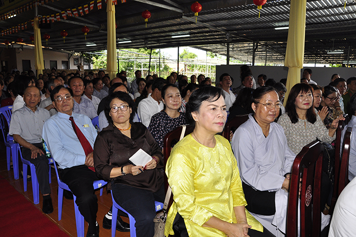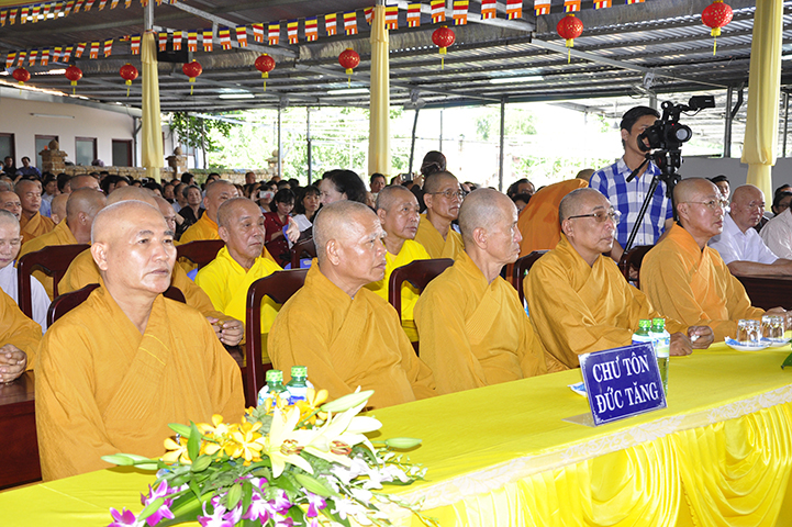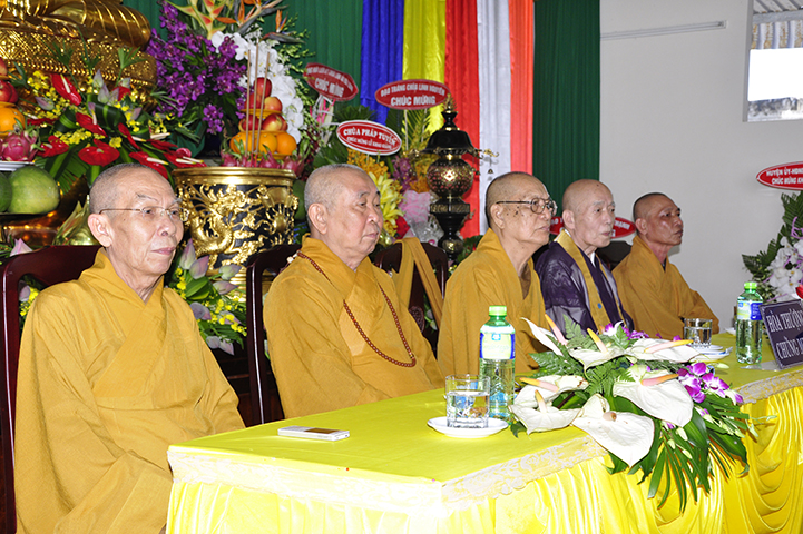 Ban tổ chức hoan hỷ được cung nghinh quý chư tôn giáo phẩm quang lâm chứng minh: HT. Thích Thiện Tánh – Phó Chủ tịch HĐTS TW GHPGVN, Trưởng ban Kiểm soát TW GHPGVN; HT Thích Thiện Đức – Ủy viên Thường trực HĐTSTW  GHPGVN; HT Yoshimizu Daichi – Nguyên Hội trưởng Hội Phật giáo Tịnh độ tông Nhật Bản; TT Thích Thanh Phong – Trưởng ban Kinh tế tài chánh TW GHPGVN; HT Thích Như Tín – Phó trưởng ban Trị sự GHPGVN TP. HCM; HT. Thích Thiện Huệ – Chứng minh Ban Trị sự GHPGVN tỉnh Long An; HT. Thích Phước toàn – UV Ban văn hoá TW GHPGVN, Viện chủ chùa Vạn Đức, Quận Bình Tân; HT. Thích Minh Thiện – UV HĐTS TW, Trưởng Ban Trị sự GHPGVN- Hiệu trưởng Trường Trung cấp Phật học Long An; HT. Thích Thiện Tâm – Phó trưởng ban Trị sự GHPGVN tỉnh Long An; HT. Thích Huệ Hồng – Chứng minh Trị sự GHPGVN tỉnh Long An; HT. Thích Chơn Đạo – Giáo thọ trường TCPH Long An; HT. Thích Thiện Phúc – Trưởng ban Trị sự Phật giáo liên huyện Đức Hoà, Đức Huệ; HT. Thích Quảng Ý – UV Ban Trị sự -Trưởng Ban Trị sự liên huyện Kiến Tường, Vĩnh Hưng; TT Thích Giác Dũng – Giảng viên Học viện Phật giáo Việt Nam; TT. Thích Giác Hiệp – Uỷ viên Hội đồng Trị sự GHPGVN; TT. Thích Hạnh Bình – Giảng viên Học viện Phật giáo Việt Nam; TT Thích Từ Thiện – Trưởng Ban Trị sự GHPGVN huyện Tân Trụ; cùng quý chư tôn đức Tăng Ni và hơn 800 đồng bào Phật tử tham dự.